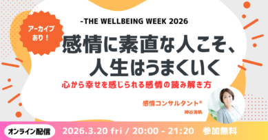 開催スケジュール 3月20日(金・祝) 以下のプログラムはオンラインにて開催します 07:30~08:50 [WS168] あなたに、おはよう。 ― フォトカードと呼吸で、あなたの朝を迎える ― 09:00~10:20 【WS100】『本当の仕事』ミニワークショップ~あなたにとって「しごと」とは? 「今の自分に心地いい」“ウェルビーイングのかけら”集めワークショップ 10:30~11:50 WS098 積水ハウスが挑む“幸せ”の可視化~幸せ度調査のご紹介~ [WS065] ウェルビーイング組織のつくり方 ―― 現場から変える組織開発アプローチ 12:30~13:50 14:00~15:20 WS161 思わず「すごい!」と言ってしまう 『すごい体操☆VIM』 WS084 well beingの秘訣を事例で紹介 ~魂を響かせ振わせる~ WS023 人生とビジネスが直観に導かれる氣のネイチャーメディテーションウォーク 15:30~16:50 WS122 幸道の歩き方 ~「よりよく共に生きる」未来を共創する~ 17:00~18:20 18:30~19:50 [WS140] 余白をつくる練習〜わたしだけの余白感マインドを見つけよう〜 20:00~21:20 WS114 3/20(金)今日から使える「よかった」の見つけ方@zoom [WS066]しあわせつなぎ × Points of You® ~わたしのしあわせ、みんなのしあわせ~ WS012 感情に素直な人ほど、人生はうまくいく ~心から幸せを感じられる感情の読み解き方~ 21:30~22:50 WS041 合わせすぎない・孤立しない・心地よい関係づくりの軸が見つかる味方カードワークショップ 開催スケジュール 2026年3月13日(金) 2026年3月14日(土) 2026年3月15日(日) リアル開催 @武蔵野キャンパス2026年3月15日(日) 2026年3月16日(月) 2026年3月17日(火) 2026年3月18日(水) 2026年3月19日(木) 2026年3月20日(金・祝) 2026年3月21日(土) 学生企画『ビーフェス2026』 @武蔵野キャンパス2026年3月21日(土) 2026年3月22日(日) 基調講演・シンポジウム@有明キャンパス
