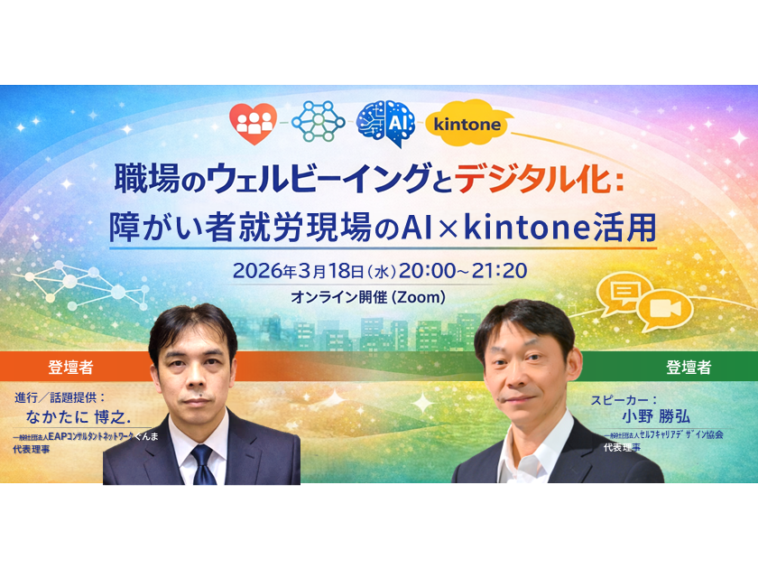 本セッションでは、障がいのある方が働く現場におけるウェルビーイングの視点を手がかりに、AIやkintone(キントーン)などのデジタル活用が“現場の安心感”や“働きやすさ”にどう寄与し得るのかを、具体事例をもとに整理します。
