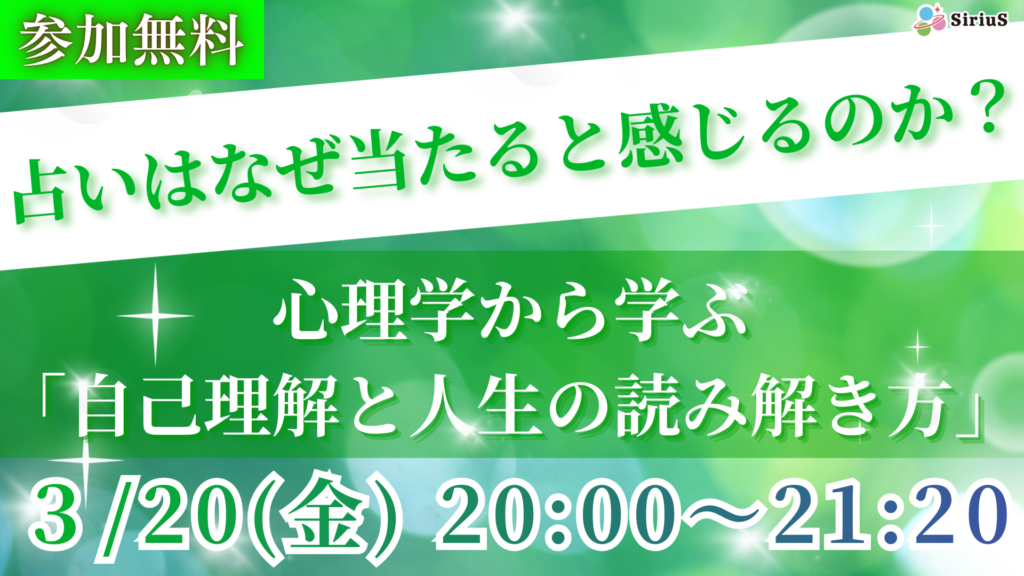 占いは、「未来予測」だけではなく、「自己理解」も活かせるという幅広い占いの可能性を実感できるイベントですので、占いが好きな方も心理学が好きな方も、なんとなく人生について思いを巡らせている方も、是非お気軽にご参加ください。